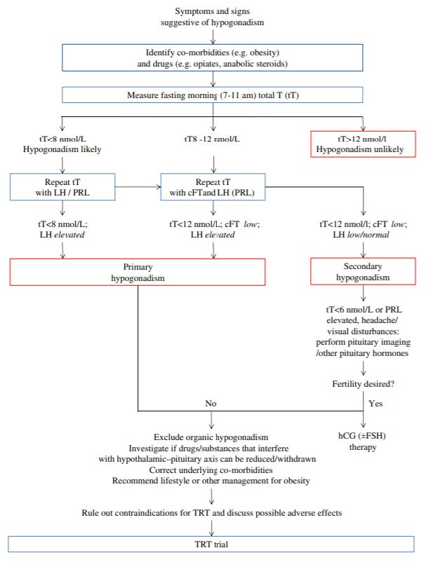 - Mulhall, J. P., Trost, L. W., Brannigan, R. E., Kurtz, E. G., Redmon, J. B., Chiles, K. A., Lightner, D. J., Miner, M. M., Murad, M. H., Nelson, C. J., Platz, E. A., Ramanathan, L. V., & Lewis, R. W. (2014, 2018). Evaluation and Management of Testosterone Deficiency. American Urological Association. Retrieved 10/22/2018 from https://www.auanet.org/guidelines-and-quality/guidelines/testosterone-deficiency-guideline